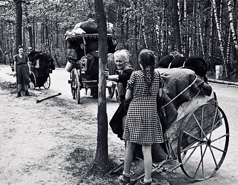 It rained that day and the rest of the night. “The road was crowded on both sides. There were thousands of wagons, wagon after wagon, all going one way. There wasn’t a single car or truck, just horses. We knew the Germans were somewhere ahead of us and the Russians somewhere behind us, but we didn’t see any soldiers anywhere”
