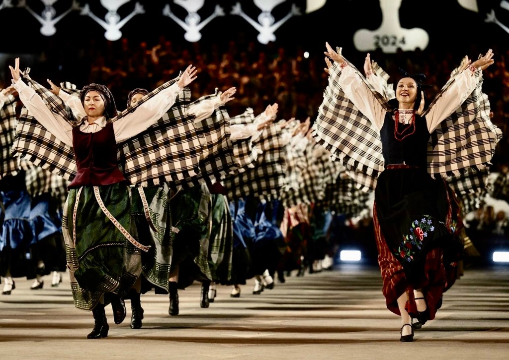 Folk dancing costumes are by and large traditional, except when they aren’t. When Gabriele Baltrunaite traveled from Cleveland, Ohio to the 2024 Centenary Song and Dance Celebration in Vilnius, the capital of Lithuania, she had to borrow one, even though she had one. “I had to borrow a dancing costume because, although I had one, but it was too Lithuanian,” she said. “They wanted us to wear our own versions for the festival.”